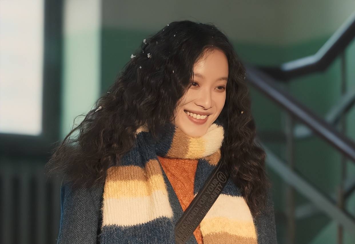 重回初中那场戏,黑色大衣搭配亮色围巾,在阳光照射下围巾更鲜亮,衬得倪妮脸蛋明媚,导演镜头与倪妮穿搭相得益彰。